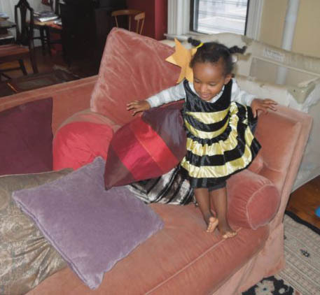 Good News.(G.N.) Julia and Mommy are fine, high and dry on the Upper West Side, on day one of the Hurricane Sandy aftermath, Julia decides to done her spare Bumble Bee costume. And Mommy learns the power of play in the tough, emergency situation, an unprecedented event in New York City. Grandma calls three times before noon.